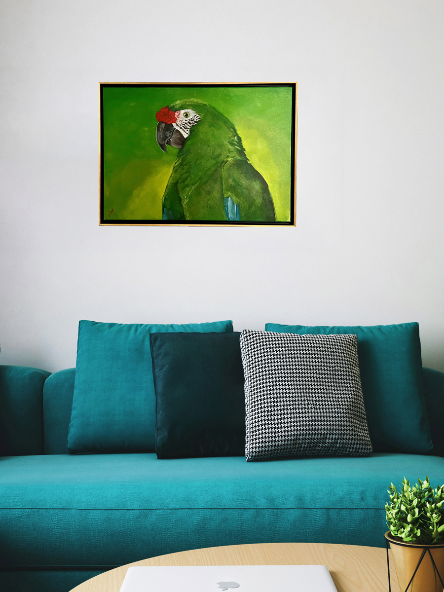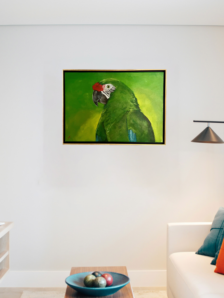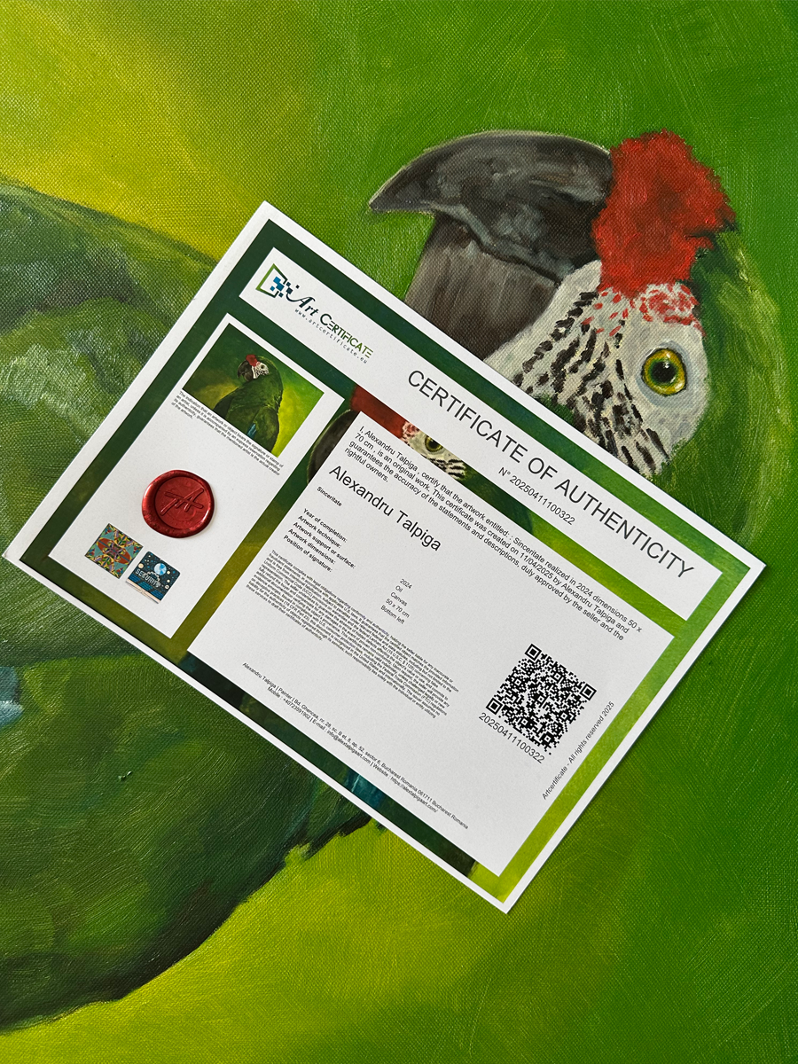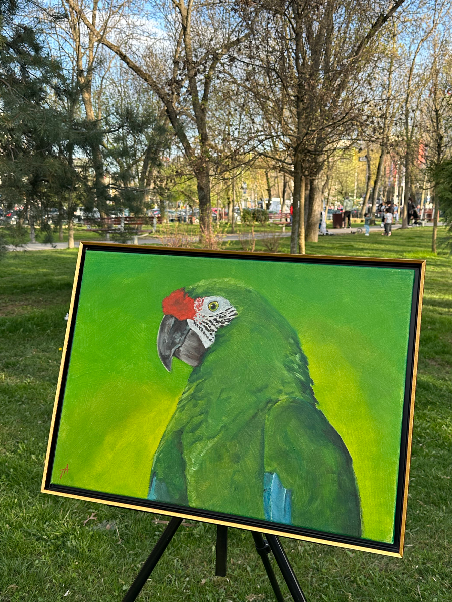 Un portret plin de culoare și vitalitate, în care papagalul Ara devine simbol al sincerității nealterate și al frumuseții naturale ce se dezvăluie fără mască.